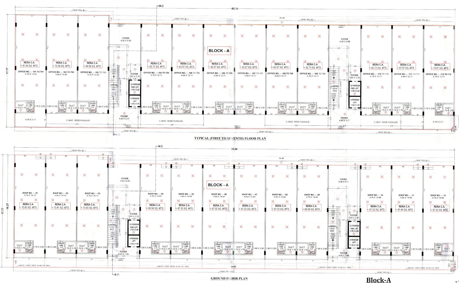 Builtup area1 sq M = 10.76 sq ft