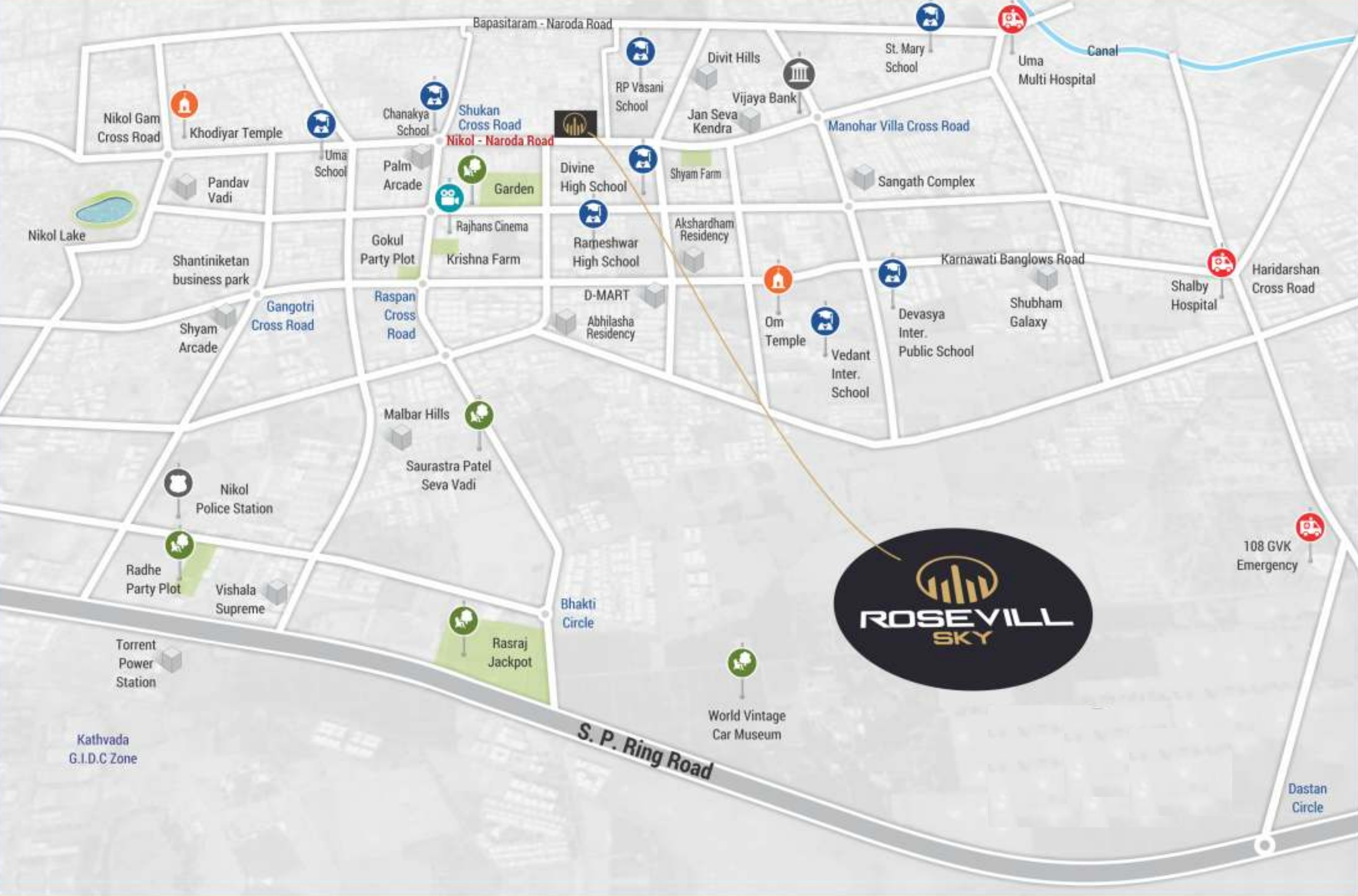 • Civic amenities like schools, malls, shopping, hospitals, banks