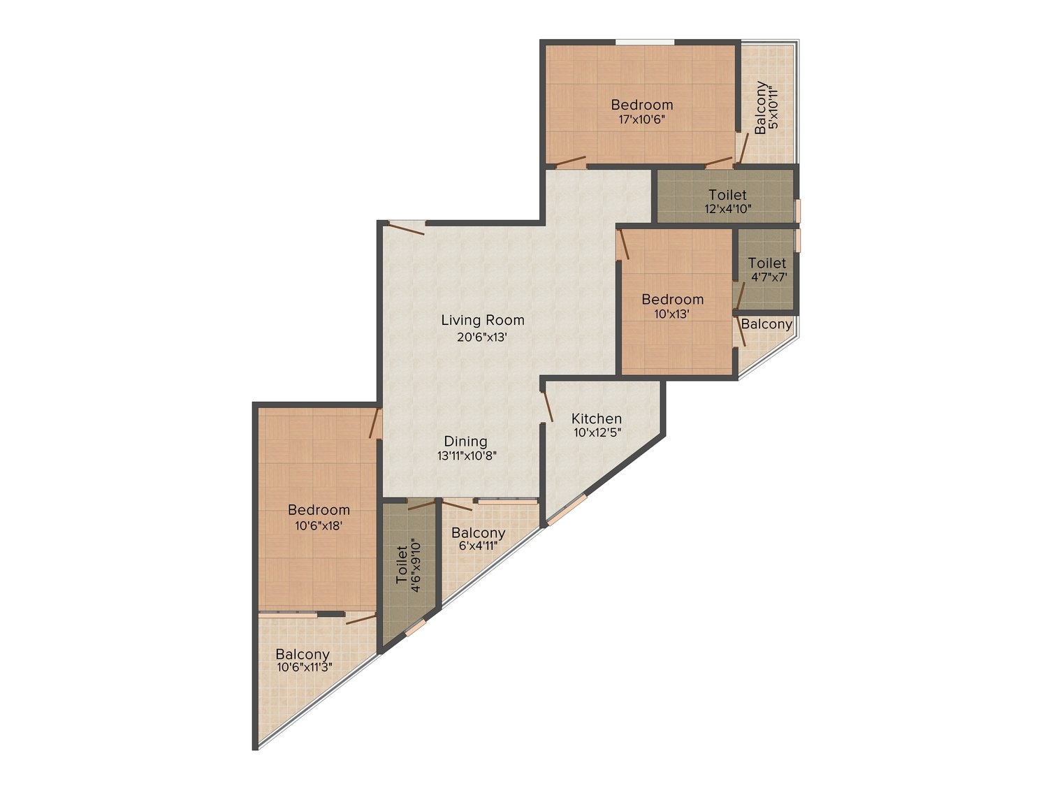 Carpet Area1 sq M = 10.76 sq ft