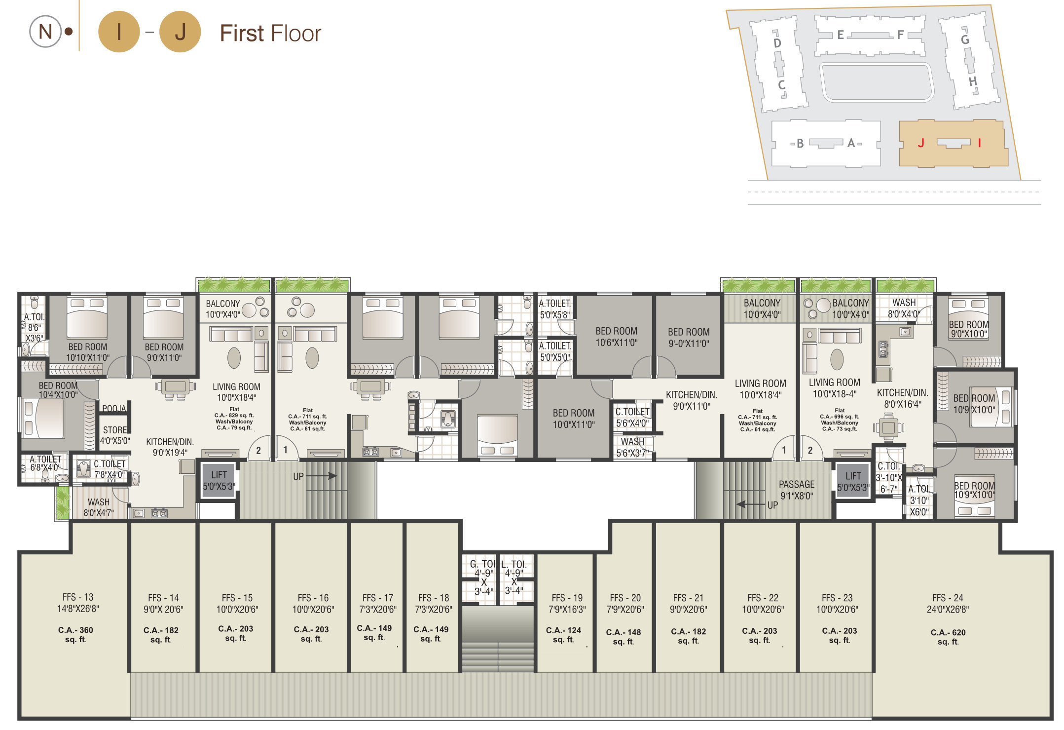 Builtup area1 sq M = 10.76 sq ft